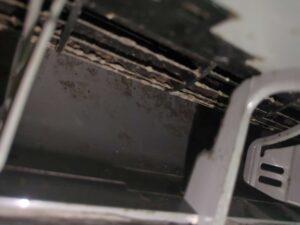 - 熱交換器のステー(支柱): 目立った汚れはないものの、黒カビが点在。